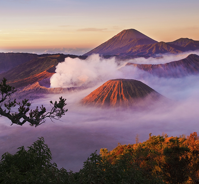 远眺Bromo火山日出,在火山口边缘,从升腾的烟雾中感受地球脉动